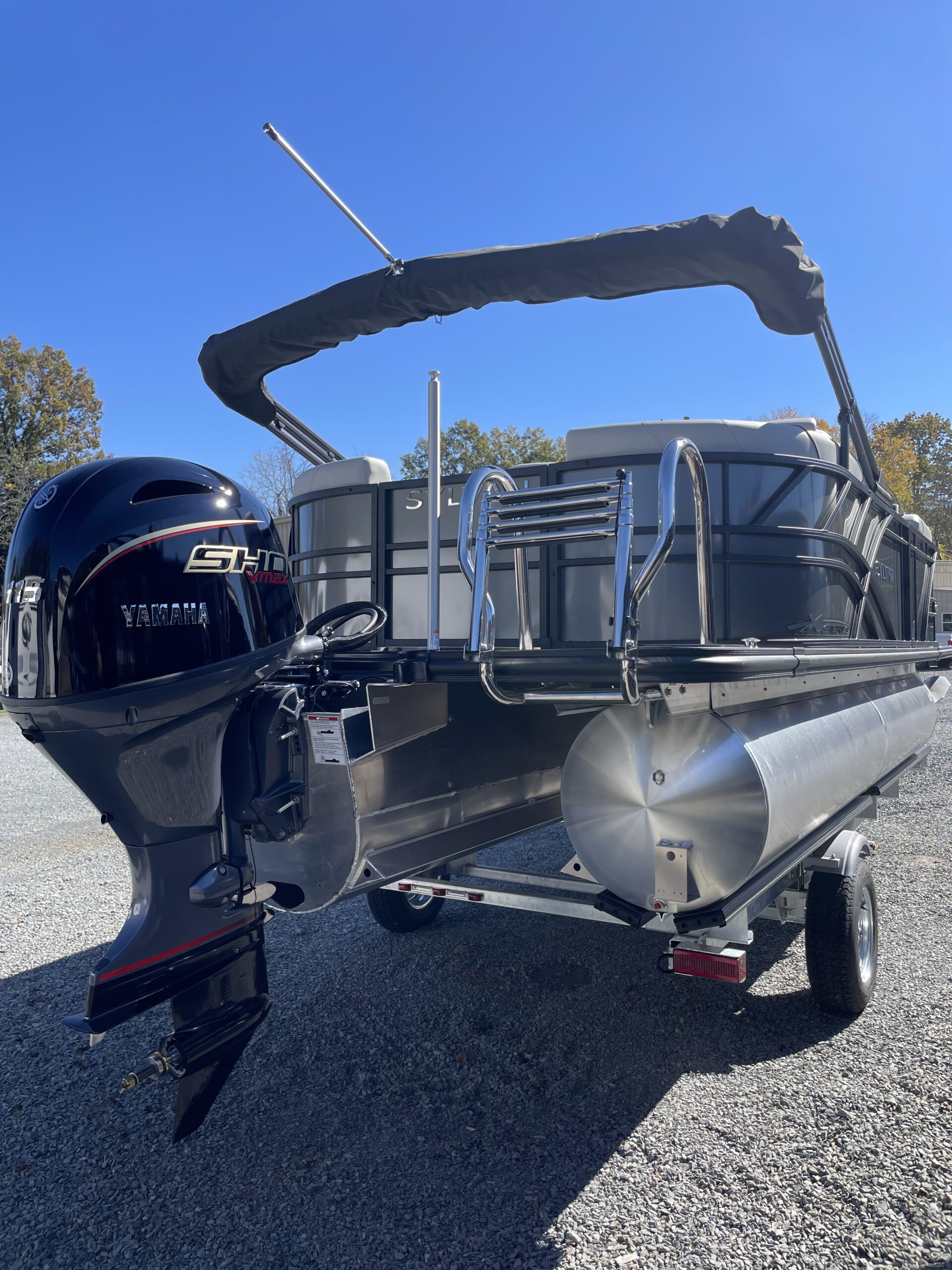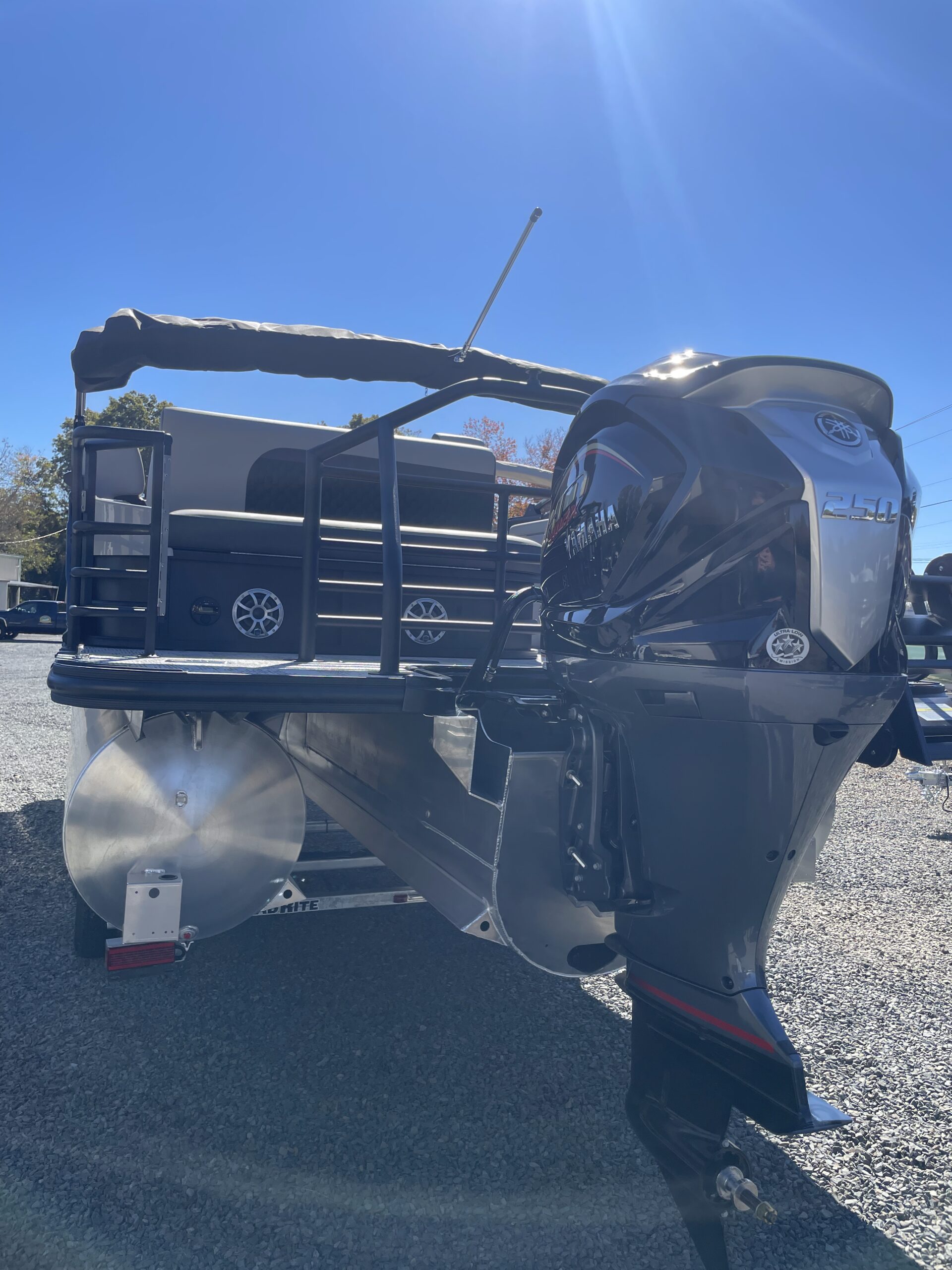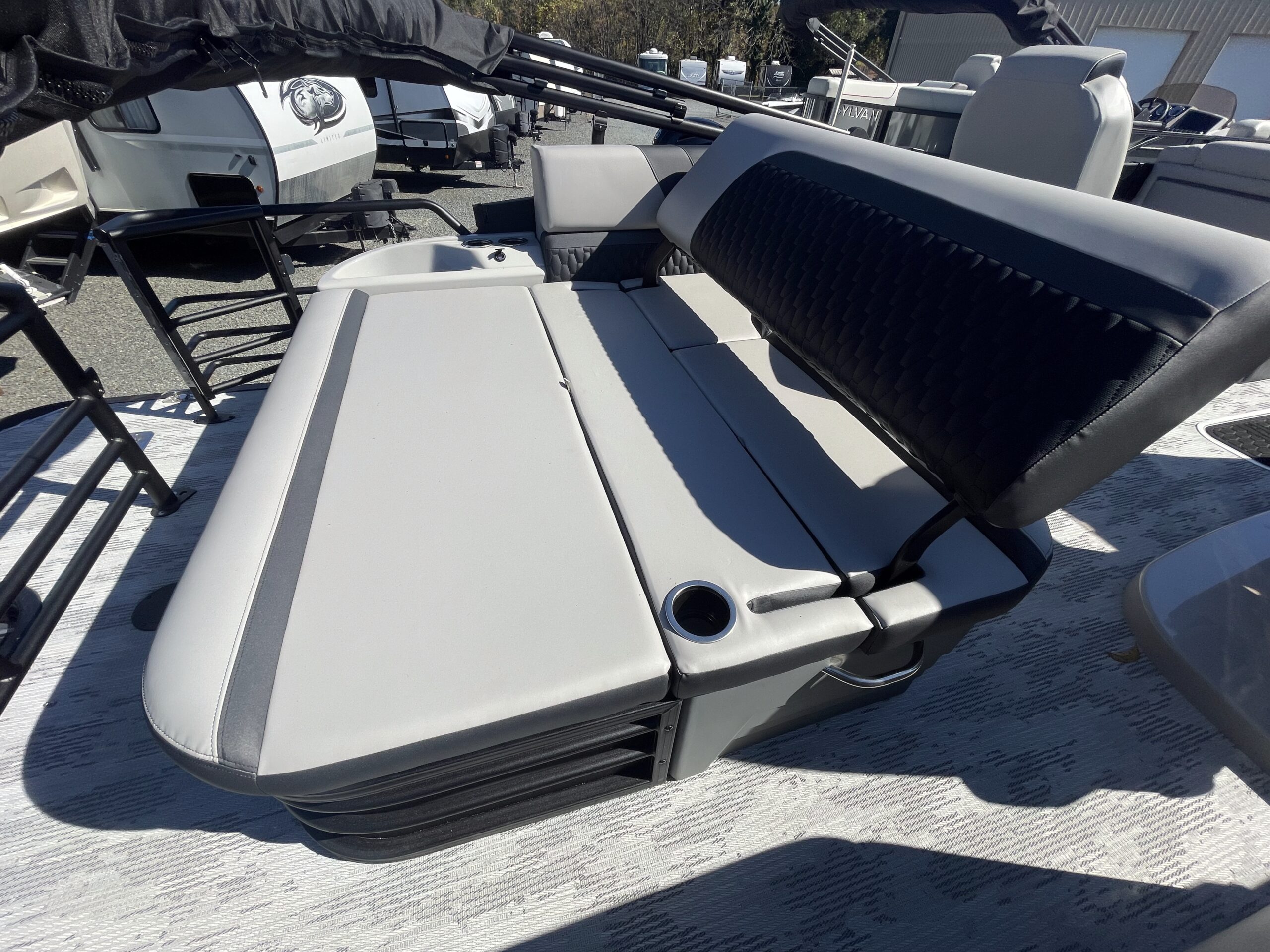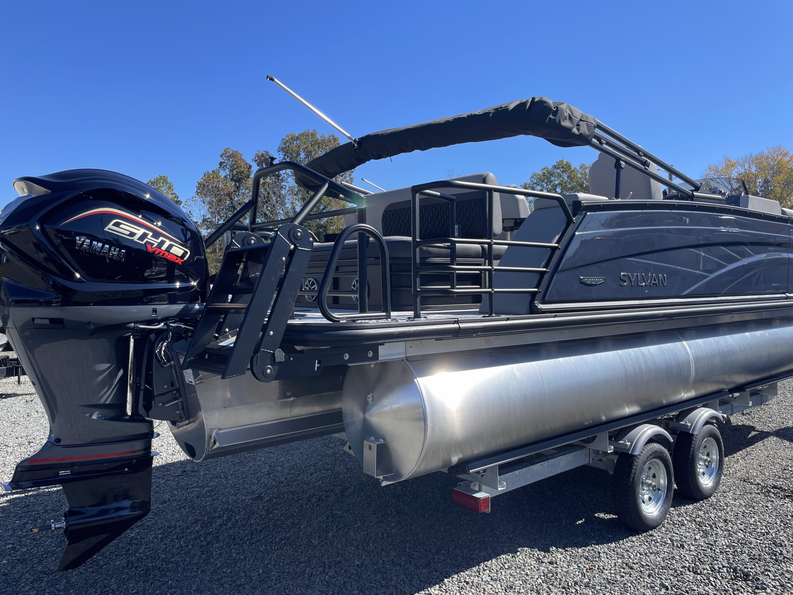 • Tritoon, silver & black paneling, teakweave flooring, grey furniture, black power bimini, comfort & performance package, hydraulic steering, extended deck, audio + package, rear facing speakers, mood & underdeck lights, deluxe exterior ski tow bar