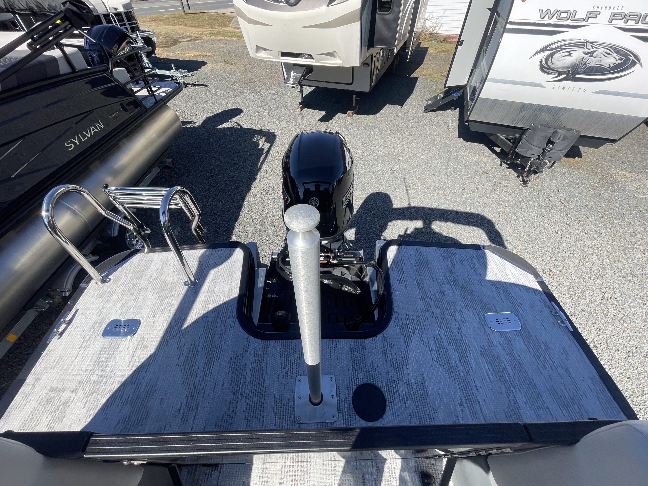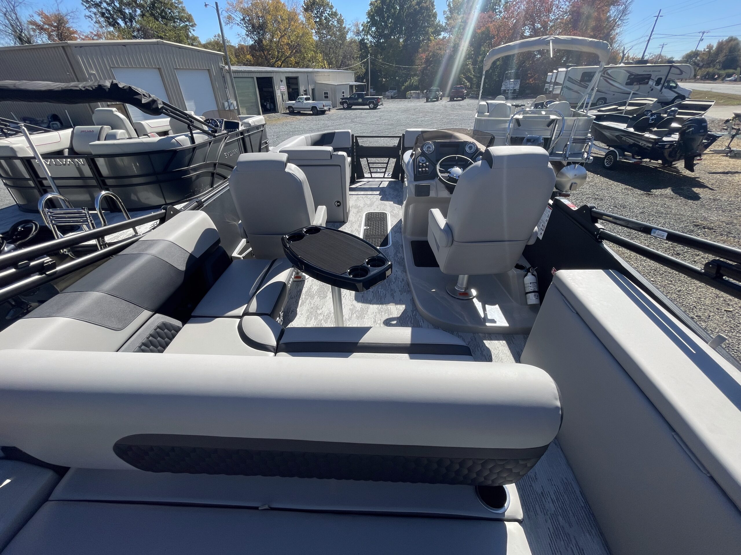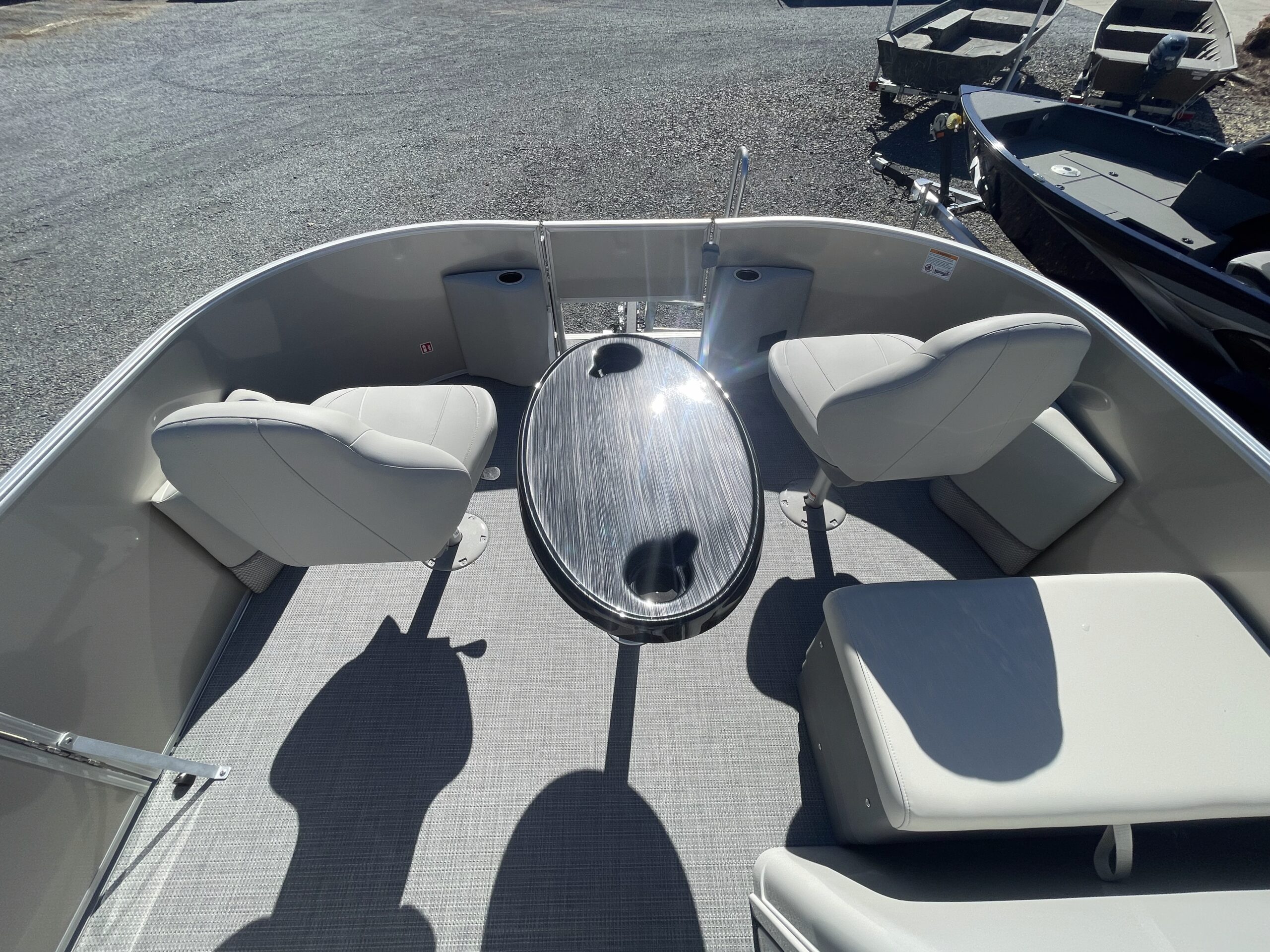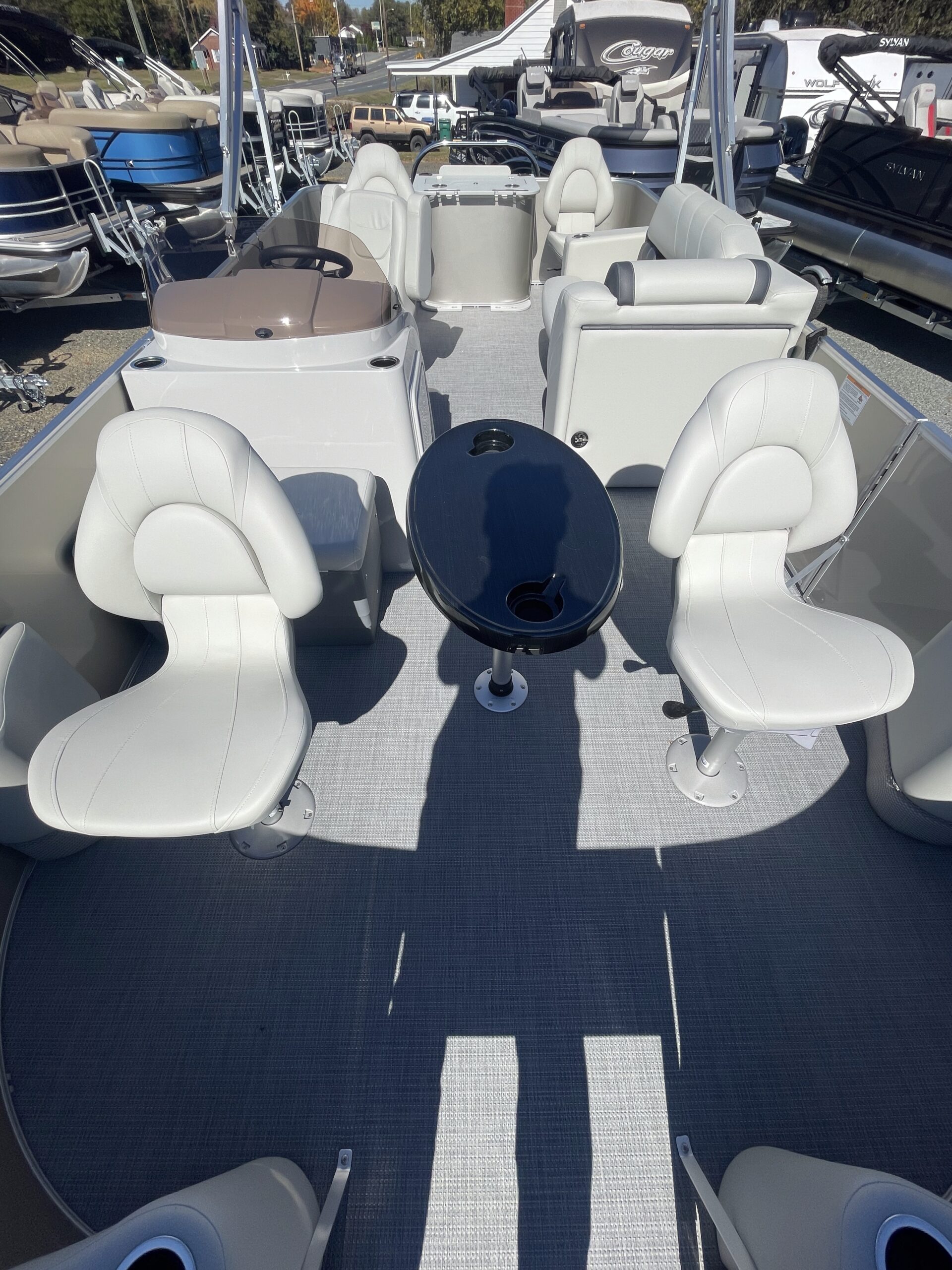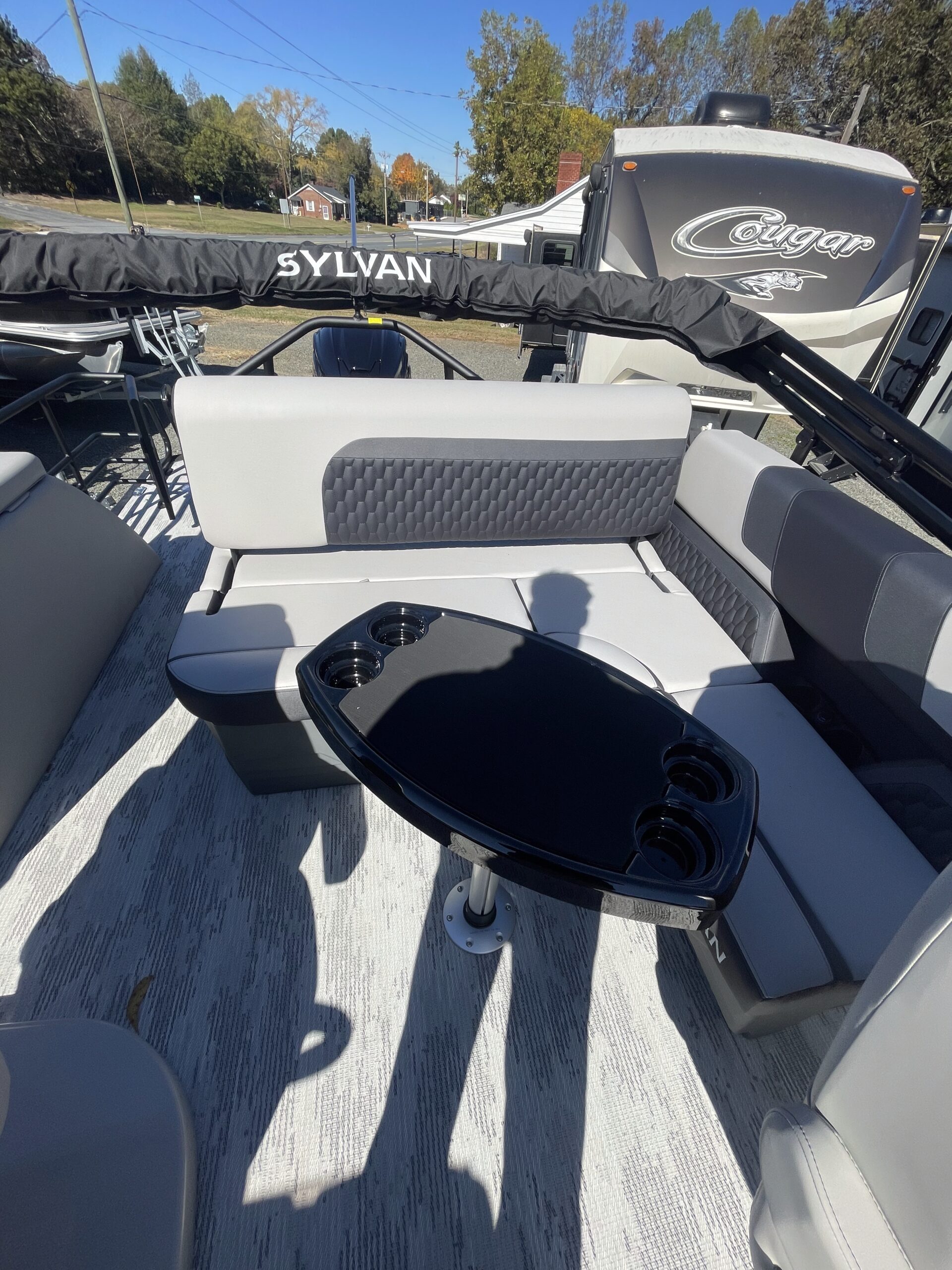 • Tritoon, silver & black paneling, teakweave flooring, grey furniture, black power bimini, comfort & performance package, hydraulic steering, extended deck, audio + package, rear facing speakers, mood & underdeck lights, deluxe exterior ski tow bar