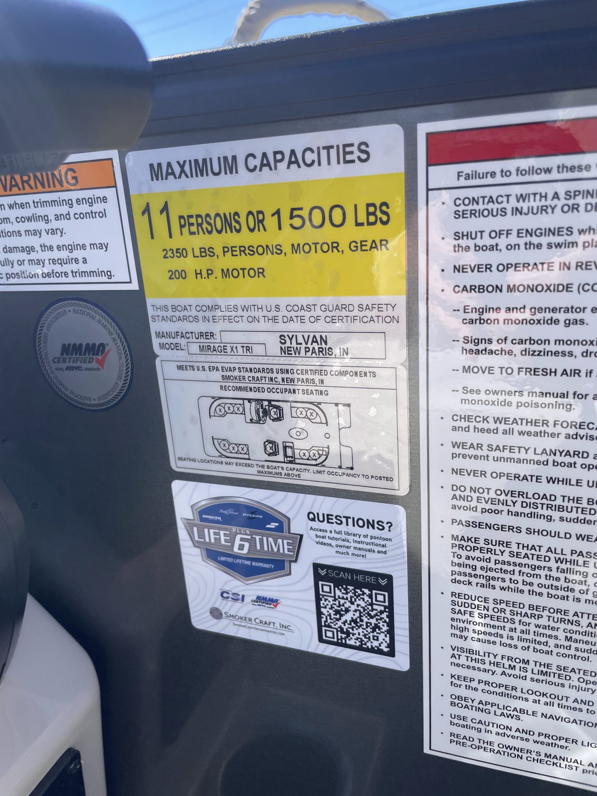 • Max capacity: 11 people / 1,500 lb