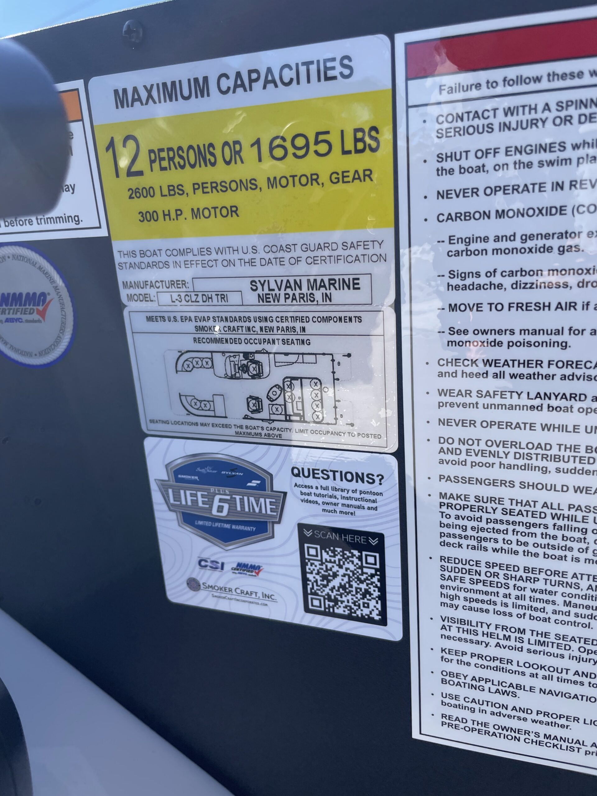 • Max capacity: 12 people / 1,695 lb